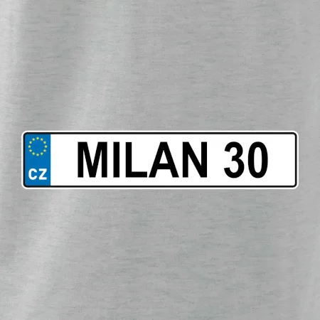 Narozeninové triko s motivem SPZ na auto. Triko pro oslavence Milana, který slaví jubileum 30 let. Dárek ke třicátinám. Narozeninová poznávačka s nápisem Milan 30. Triko s "espézetkou" k narozeninám. Oslav třicátiny tímhle narozeninovým trikem!