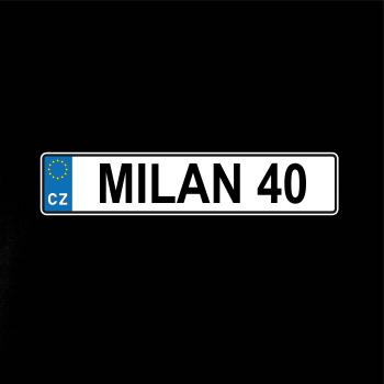 Narozeninové triko s motivem SPZ na auto. Triko pro oslavence Milana, který slaví jubileum 40 let. Dárek ke čtyřicátinám. Narozeninová poznávačka s nápisem Milan 40. Triko s "espézetkou" k narozeninám. Oslav čtyřicátiny tímhle narozeninovým trikem!