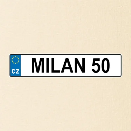 Narozeninové triko s motivem SPZ na auto. Triko pro oslavence Milana, který slaví jubileum 50 let. Dárek k padesátinám. Narozeninová poznávačka s nápisem Milan 50. Triko s "espézetkou" k narozeninám. Oslav padesátiny tímhle narozeninovým trikem!