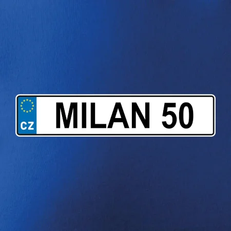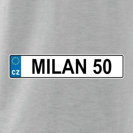 Narozeninové triko s motivem SPZ na auto. Triko pro oslavence Milana, který slaví jubileum 50 let. Dárek k padesátinám. Narozeninová poznávačka s nápisem Milan 50. Triko s "espézetkou" k narozeninám. Oslav padesátiny tímhle narozeninovým trikem!