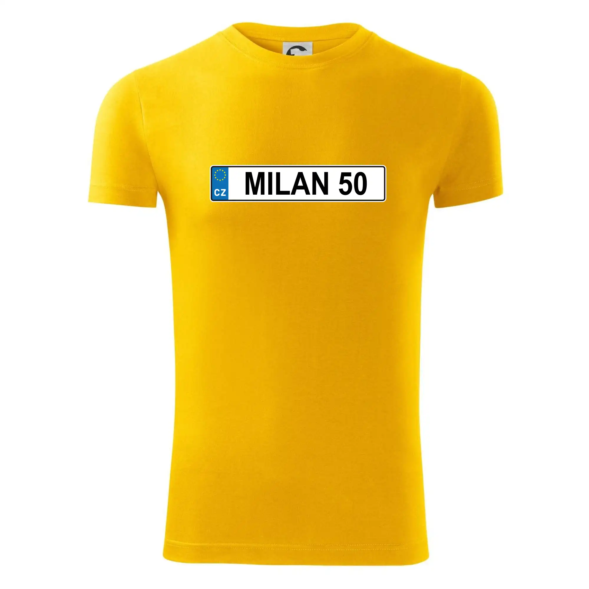 Narozeninové triko s motivem SPZ na auto. Triko pro oslavence Milana, který slaví jubileum 50 let. Dárek k padesátinám. Narozeninová poznávačka s nápisem Milan 50. Triko s "espézetkou" k narozeninám. Oslav padesátiny tímhle narozeninovým trikem!