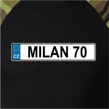 Narozeninové triko s motivem SPZ na auto. Triko pro oslavence Milana, který slaví jubileum 70 let. Dárek k sedmdesátinám. Narozeninová poznávačka s nápisem Milan 70. Triko s "espézetkou" k narozeninám. Oslav sedmdesátiny tímhle narozeninovým trikem!