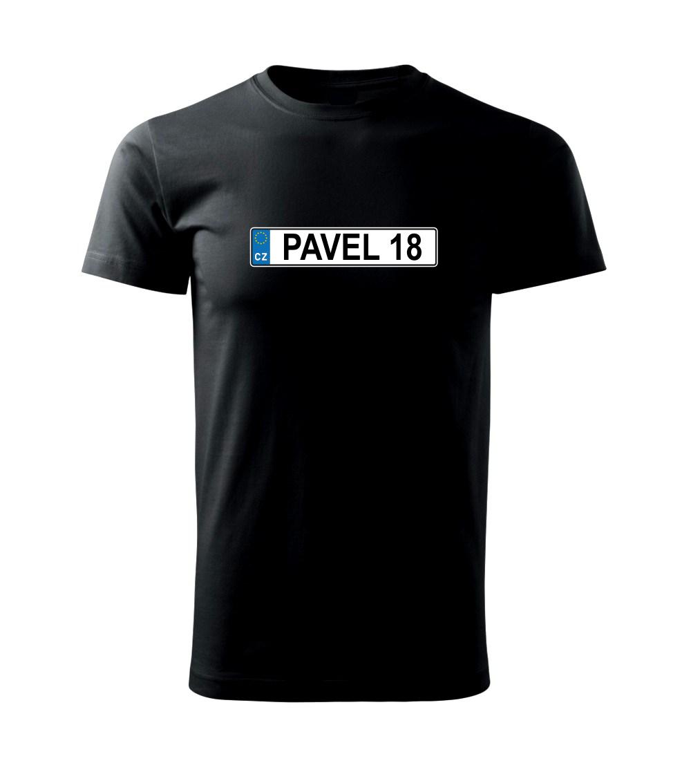 Narozeninové triko s motivem SPZ na auto. Triko pro oslavence Pavla, který slaví jubileum 18 let. Dárek k osmnáctinám. Narozeninová poznávačka s nápisem Pavel 18. Triko s "espézetkou" k narozeninám. Oslav plnoletost - osmnáctiny tímhle trikem!