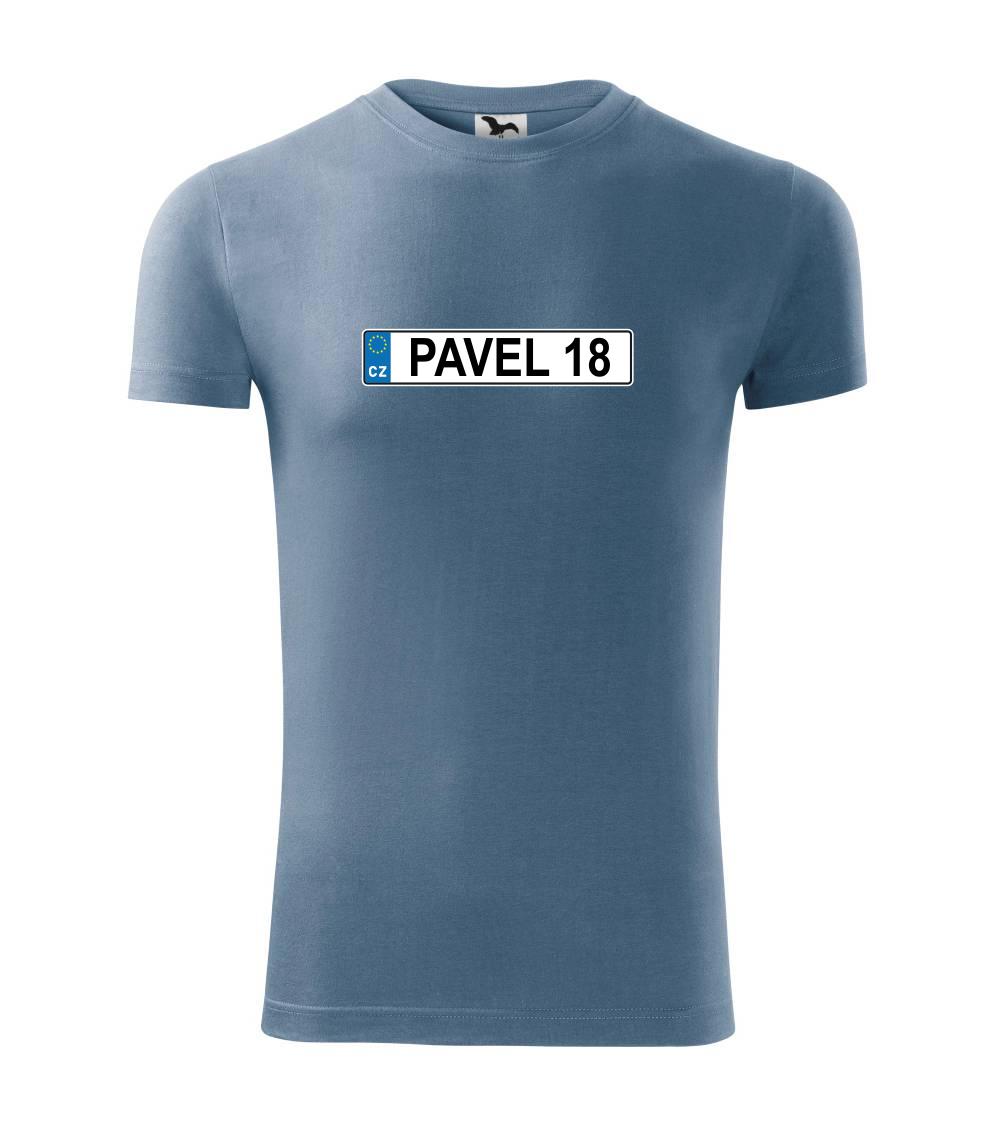 Narozeninové triko s motivem SPZ na auto. Triko pro oslavence Pavla, který slaví jubileum 18 let. Dárek k osmnáctinám. Narozeninová poznávačka s nápisem Pavel 18. Triko s "espézetkou" k narozeninám. Oslav plnoletost - osmnáctiny tímhle trikem!