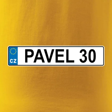 Narozeninové triko s motivem SPZ na auto. Triko pro oslavence Pavla, který slaví jubileum 30 let. Dárek ke třicátinám. Narozeninová poznávačka s nápisem Pavel 30. Triko s "espézetkou" k narozeninám. Oslav třicátiny tímhle trikem!