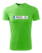 Narozeninové triko s motivem SPZ na auto. Triko pro oslavence Pavla, který slaví jubileum 30 let. Dárek ke třicátinám. Narozeninová poznávačka s nápisem Pavel 30. Triko s "espézetkou" k narozeninám. Oslav třicátiny tímhle trikem!