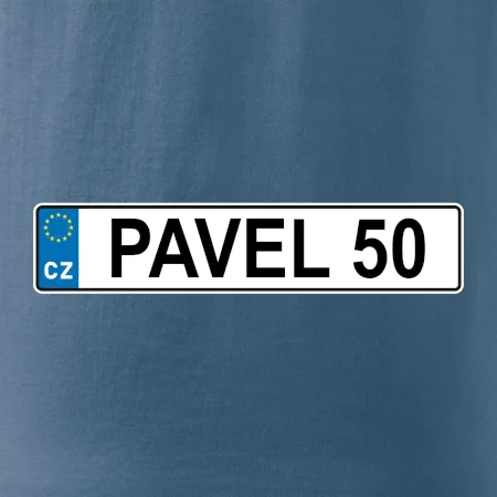 Narozeninové triko s motivem SPZ na auto. Triko pro oslavence Pavla, který slaví jubileum 50 let. Dárek k padesátinám. Narozeninová poznávačka s nápisem Pavel 50. Triko s "espézetkou" k narozeninám. Oslav padesátiny tímhle trikem!