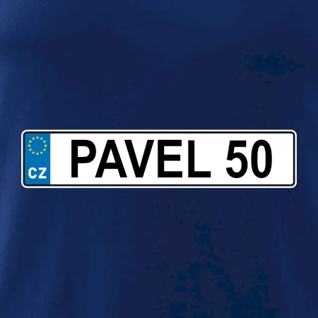 Narozeninové triko s motivem SPZ na auto. Triko pro oslavence Pavla, který slaví jubileum 50 let. Dárek k padesátinám. Narozeninová poznávačka s nápisem Pavel 50. Triko s "espézetkou" k narozeninám. Oslav padesátiny tímhle trikem!