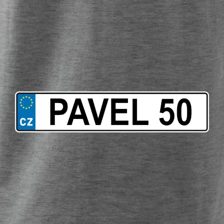 Narozeninové triko s motivem SPZ na auto. Triko pro oslavence Pavla, který slaví jubileum 50 let. Dárek k padesátinám. Narozeninová poznávačka s nápisem Pavel 50. Triko s "espézetkou" k narozeninám. Oslav padesátiny tímhle trikem!
