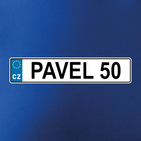Narozeninové triko s motivem SPZ na auto. Triko pro oslavence Pavla, který slaví jubileum 50 let. Dárek k padesátinám. Narozeninová poznávačka s nápisem Pavel 50. Triko s "espézetkou" k narozeninám. Oslav padesátiny tímhle trikem!