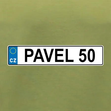 Narozeninové triko s motivem SPZ na auto. Triko pro oslavence Pavla, který slaví jubileum 50 let. Dárek k padesátinám. Narozeninová poznávačka s nápisem Pavel 50. Triko s "espézetkou" k narozeninám. Oslav padesátiny tímhle trikem!