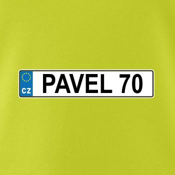 Narozeninové triko s motivem SPZ na auto. Triko pro oslavence Pavla, který slaví jubileum 70 let. Dárek k sedmdesátinám. Narozeninová poznávačka s nápisem Pavel 70. Triko s "espézetkou" k narozeninám. Oslav sedmdesátiny tímhle trikem!