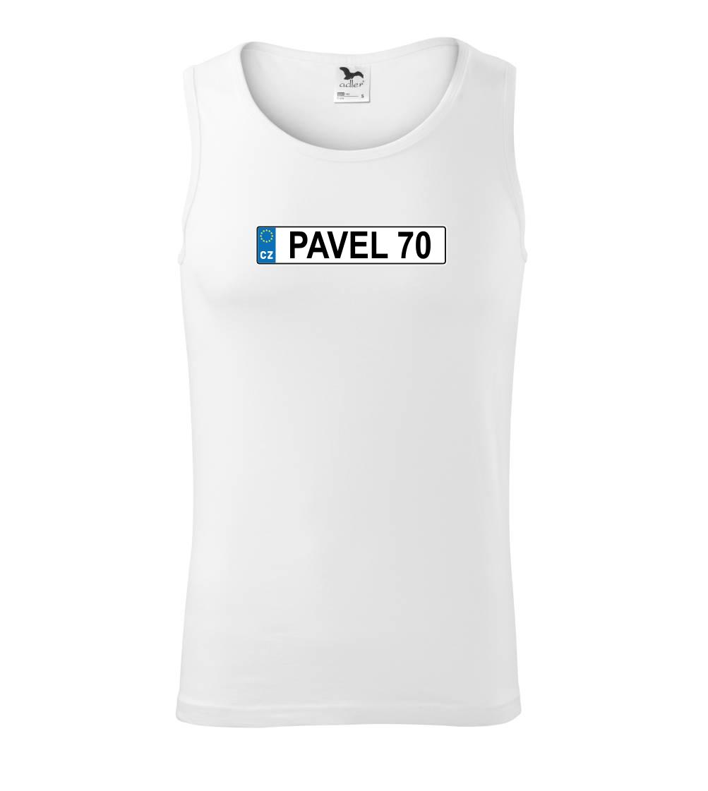 Narozeninové triko s motivem SPZ na auto. Triko pro oslavence Pavla, který slaví jubileum 70 let. Dárek k sedmdesátinám. Narozeninová poznávačka s nápisem Pavel 70. Triko s "espézetkou" k narozeninám. Oslav sedmdesátiny tímhle trikem!