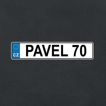 Narozeninové triko s motivem SPZ na auto. Triko pro oslavence Pavla, který slaví jubileum 70 let. Dárek k sedmdesátinám. Narozeninová poznávačka s nápisem Pavel 70. Triko s "espézetkou" k narozeninám. Oslav sedmdesátiny tímhle trikem!