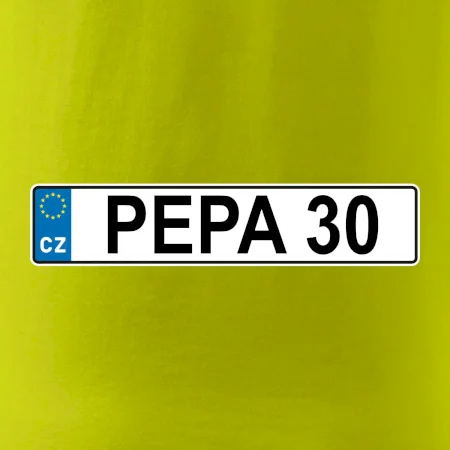 Narozeninové triko s motivem SPZ na auto. Triko pro oslavence Pepu, který slaví jubileum 30 let. Dárek ke třicátinám. Narozeninová poznávačka s nápisem Pepa 30. Triko s "espézetkou" k narozeninám. Oslav třicátiny tímhle trikem!