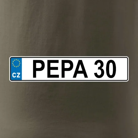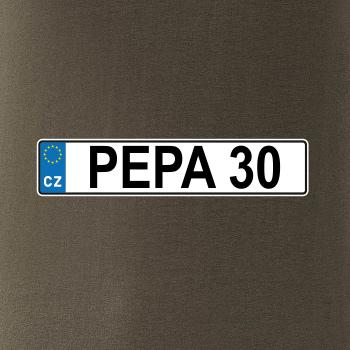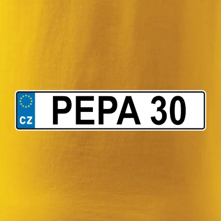 Narozeninové triko s motivem SPZ na auto. Triko pro oslavence Pepu, který slaví jubileum 30 let. Dárek ke třicátinám. Narozeninová poznávačka s nápisem Pepa 30. Triko s "espézetkou" k narozeninám. Oslav třicátiny tímhle trikem!