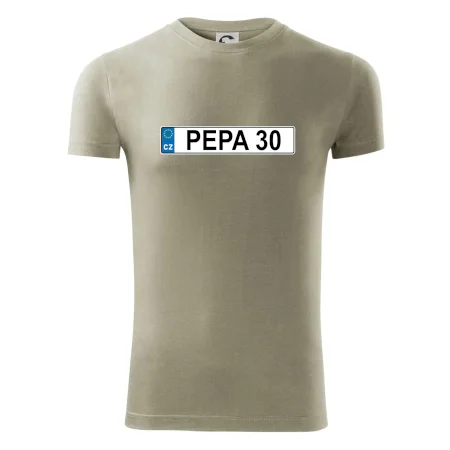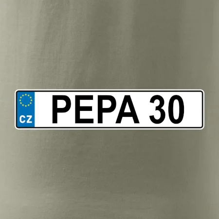 Narozeninové triko s motivem SPZ na auto. Triko pro oslavence Pepu, který slaví jubileum 30 let. Dárek ke třicátinám. Narozeninová poznávačka s nápisem Pepa 30. Triko s "espézetkou" k narozeninám. Oslav třicátiny tímhle trikem!