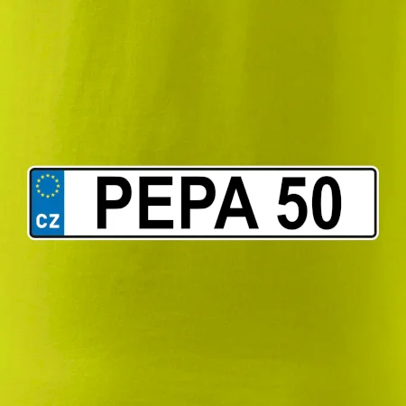 Narozeninové triko s motivem SPZ na auto. Triko pro oslavence Pepu, který slaví jubileum 50 let. Dárek k padesátinám. Narozeninová poznávačka s nápisem Pepa 50. Triko s "espézetkou" k narozeninám. Oslav padesátiny tímhle trikem!