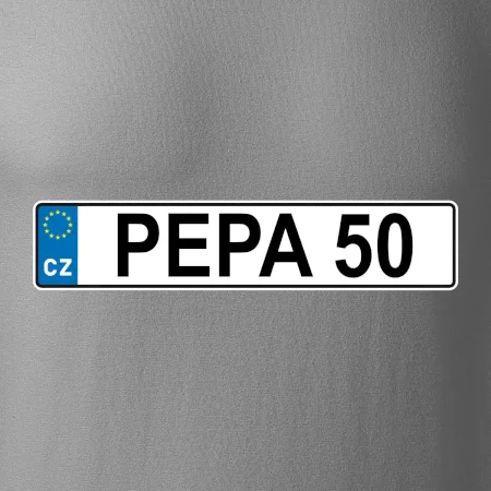 Narozeninové triko s motivem SPZ na auto. Triko pro oslavence Pepu, který slaví jubileum 50 let. Dárek k padesátinám. Narozeninová poznávačka s nápisem Pepa 50. Triko s "espézetkou" k narozeninám. Oslav padesátiny tímhle trikem!
