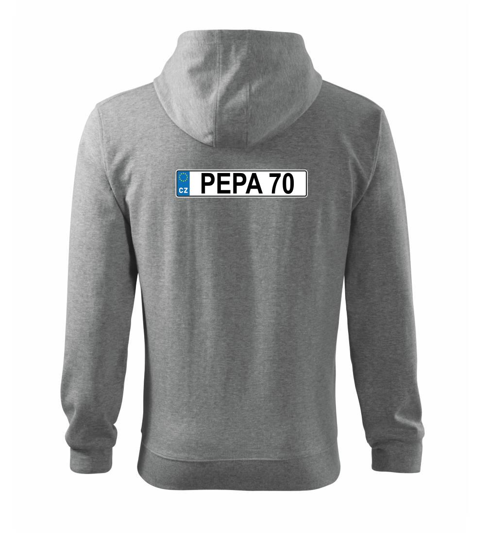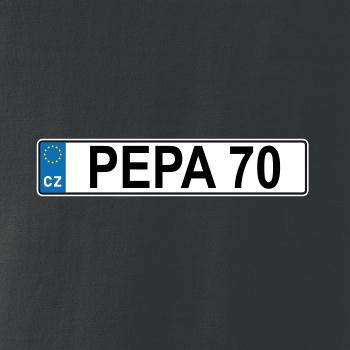 Narozeninové triko s motivem SPZ na auto. Triko pro oslavence Pepu, který slaví jubileum 70 let. Dárek k sedmdesátinám. Narozeninová poznávačka s nápisem Pepa 70. Triko s "espézetkou" k narozeninám. Oslav sedmdesátiny tímhle trikem!