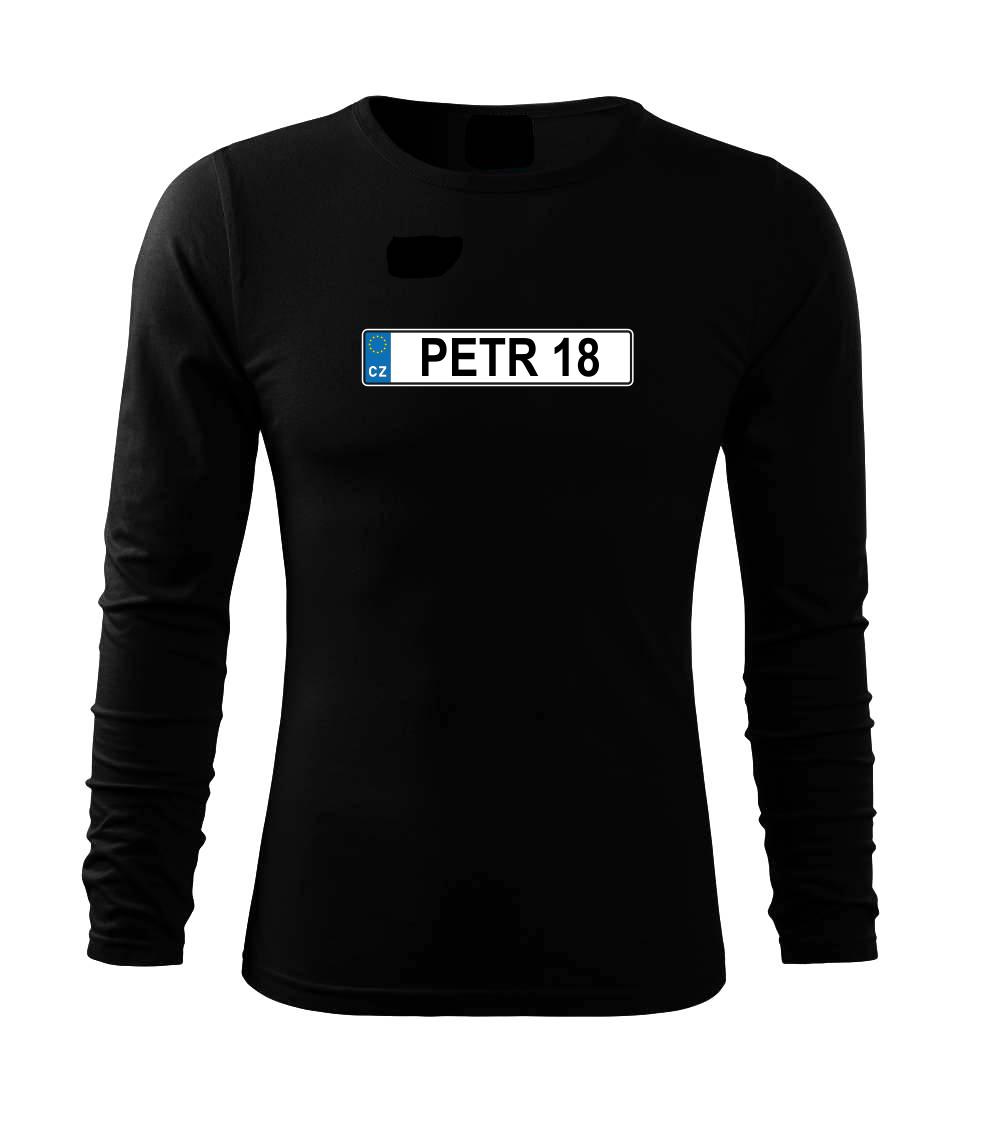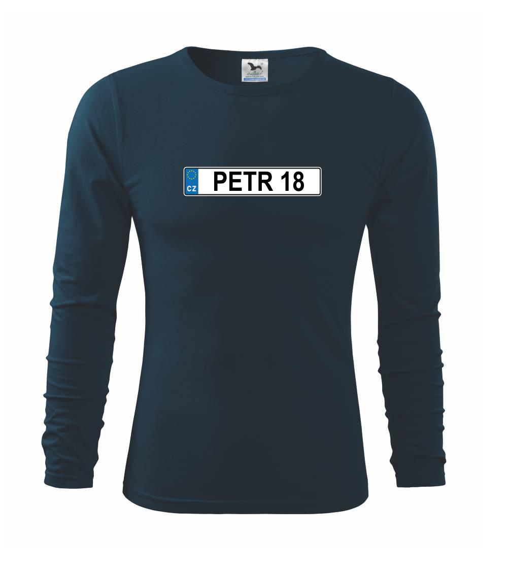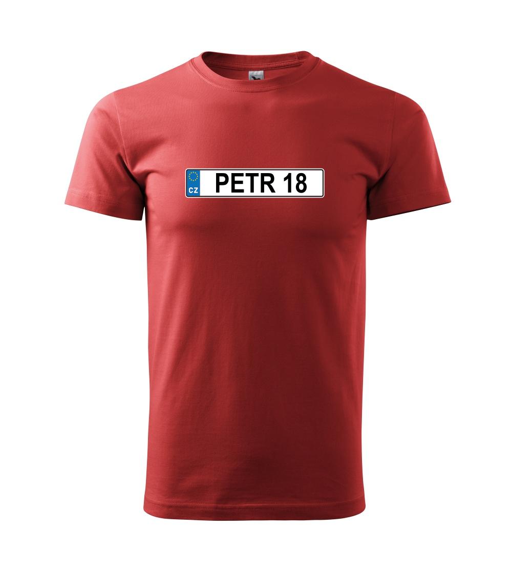 Narozeninové triko s motivem SPZ na auto. Triko pro oslavence Petra, který slaví jubileum 18 let. Dárek k osmnáctinám. Narozeninová poznávačka s nápisem Petr 18. Triko s "espézetkou" k narozeninám. Oslav plnoletost - osmnáctiny tímhle trikem!
