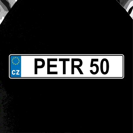 Narozeninové triko s motivem SPZ na auto. Triko pro oslavence Petra, který slaví jubileum 50 let. Dárek k padesátinám. Narozeninová poznávačka s nápisem Petr 50. Triko s "espézetkou" k narozeninám. Oslav padesátiny tímhle trikem!