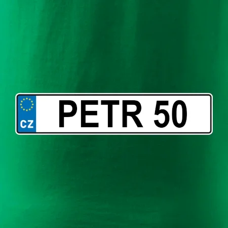 Narozeninové triko s motivem SPZ na auto. Triko pro oslavence Petra, který slaví jubileum 50 let. Dárek k padesátinám. Narozeninová poznávačka s nápisem Petr 50. Triko s "espézetkou" k narozeninám. Oslav padesátiny tímhle trikem!