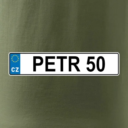 Narozeninové triko s motivem SPZ na auto. Triko pro oslavence Petra, který slaví jubileum 50 let. Dárek k padesátinám. Narozeninová poznávačka s nápisem Petr 50. Triko s "espézetkou" k narozeninám. Oslav padesátiny tímhle trikem!