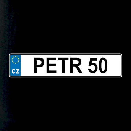 Narozeninové triko s motivem SPZ na auto. Triko pro oslavence Petra, který slaví jubileum 50 let. Dárek k padesátinám. Narozeninová poznávačka s nápisem Petr 50. Triko s "espézetkou" k narozeninám. Oslav padesátiny tímhle trikem!