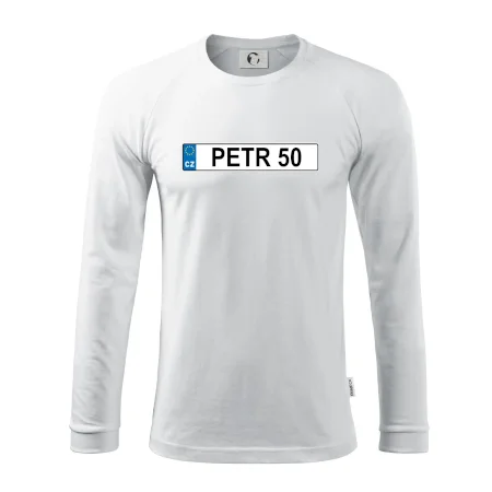Narozeninové triko s motivem SPZ na auto. Triko pro oslavence Petra, který slaví jubileum 50 let. Dárek k padesátinám. Narozeninová poznávačka s nápisem Petr 50. Triko s "espézetkou" k narozeninám. Oslav padesátiny tímhle trikem!