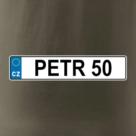 Narozeninové triko s motivem SPZ na auto. Triko pro oslavence Petra, který slaví jubileum 50 let. Dárek k padesátinám. Narozeninová poznávačka s nápisem Petr 50. Triko s "espézetkou" k narozeninám. Oslav padesátiny tímhle trikem!