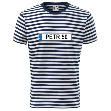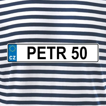 Narozeninové triko s motivem SPZ na auto. Triko pro oslavence Petra, který slaví jubileum 50 let. Dárek k padesátinám. Narozeninová poznávačka s nápisem Petr 50. Triko s "espézetkou" k narozeninám. Oslav padesátiny tímhle trikem!