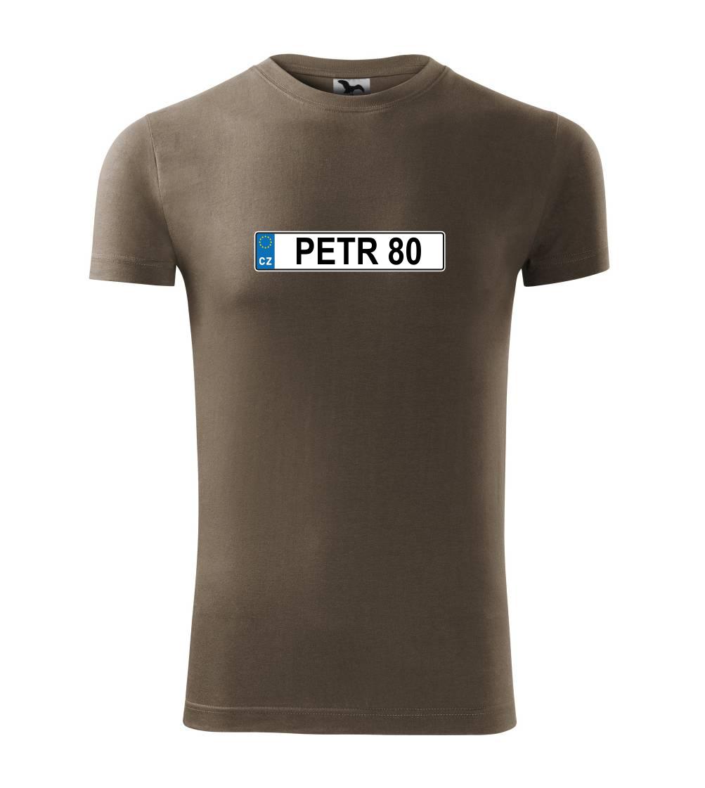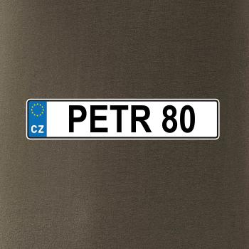 Narozeninové triko s motivem SPZ na auto. Triko pro oslavence Petra, který slaví jubileum 80 let. Dárek k osmdesátinám. Narozeninová poznávačka s nápisem Petr 80. Triko s "espézetkou" k narozeninám. Oslav osmdesátiny tímhle trikem!