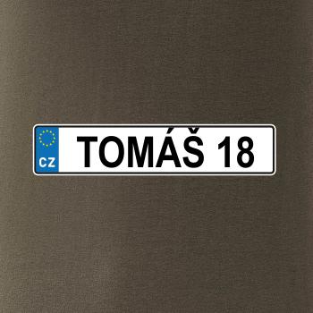 Narozeninové triko s motivem SPZ na auto. Triko pro oslavence Tomáše, který slaví jubileum 18 let. Dárek k osmnáctinám. Narozeninová poznávačka s nápisem Tomáš 18. Triko s "espézetkou" k narozeninám. Oslav plnoletost - osmnáctiny s tímhle trikem!
