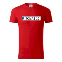 Narozeninové triko s motivem SPZ na auto. Triko pro oslavence Tomáše, který slaví jubileum 30 let. Dárek ke třicátinám. Narozeninová poznávačka s nápisem Tomáš 30. Triko s "espézetkou" k narozeninám. Oslav třicátiny s tímhle trikem!