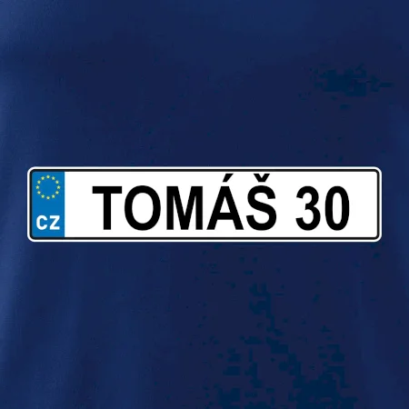 Narozeninové triko s motivem SPZ na auto. Triko pro oslavence Tomáše, který slaví jubileum 30 let. Dárek ke třicátinám. Narozeninová poznávačka s nápisem Tomáš 30. Triko s "espézetkou" k narozeninám. Oslav třicátiny s tímhle trikem!