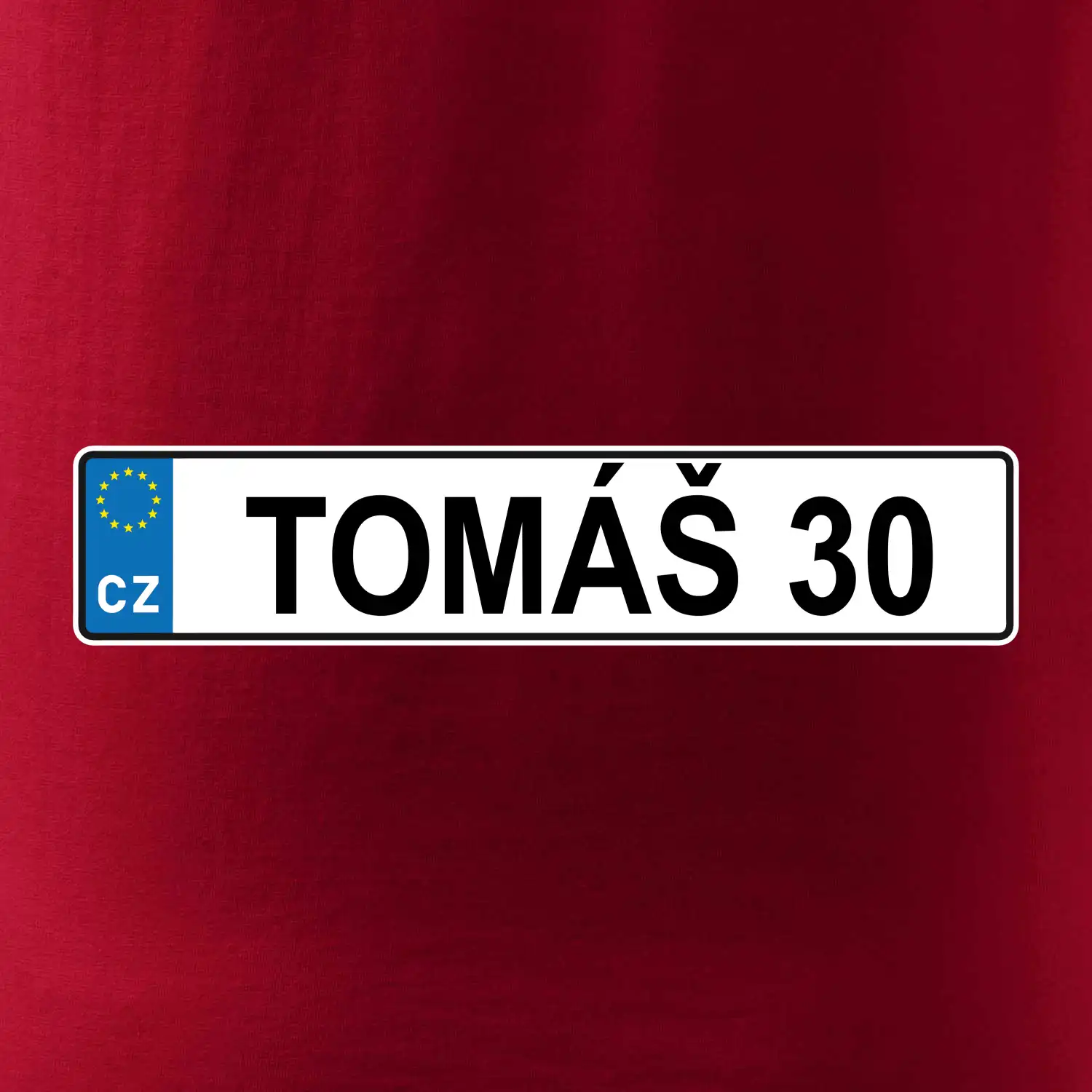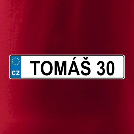 Narozeninové triko s motivem SPZ na auto. Triko pro oslavence Tomáše, který slaví jubileum 30 let. Dárek ke třicátinám. Narozeninová poznávačka s nápisem Tomáš 30. Triko s "espézetkou" k narozeninám. Oslav třicátiny s tímhle trikem!
