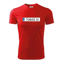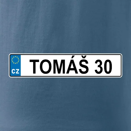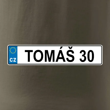 Narozeninové triko s motivem SPZ na auto. Triko pro oslavence Tomáše, který slaví jubileum 30 let. Dárek ke třicátinám. Narozeninová poznávačka s nápisem Tomáš 30. Triko s "espézetkou" k narozeninám. Oslav třicátiny s tímhle trikem!