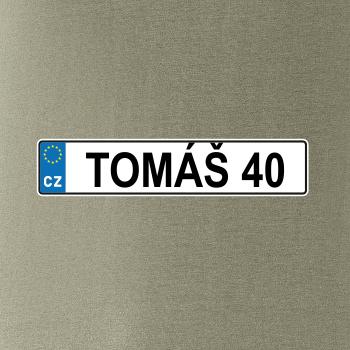 Narozeninové triko s motivem SPZ na auto. Triko pro oslavence Tomáše, který slaví jubileum 40 let. Dárek ke čtyřicátinám. Narozeninová poznávačka s nápisem Tomáš 40. Triko s "espézetkou" k narozeninám. Oslav čtyřicátiny s tímhle trikem!