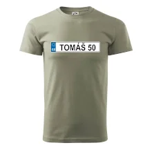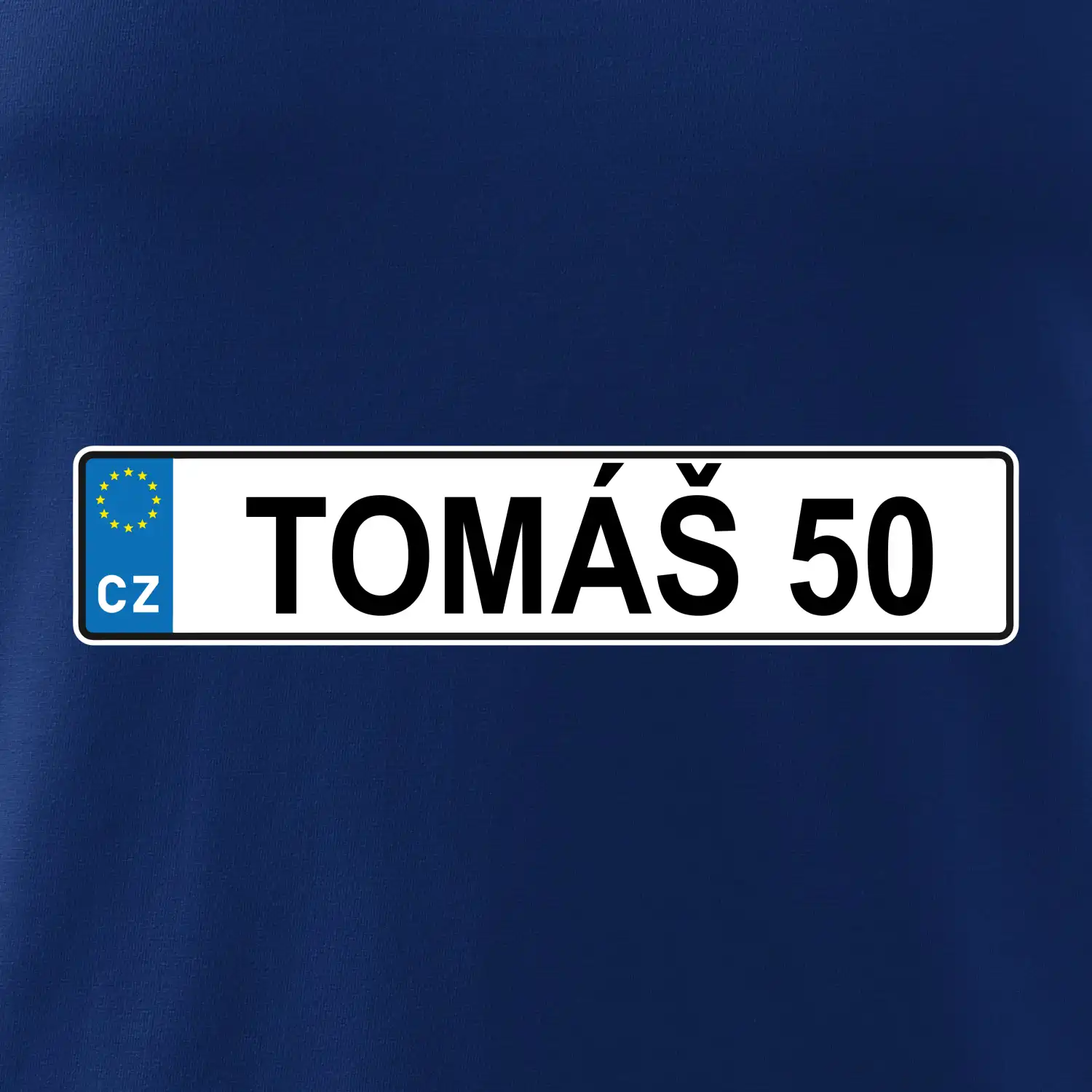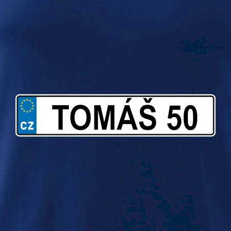 Narozeninové triko s motivem SPZ na auto. Triko pro oslavence Tomáše, který slaví jubileum 50 let. Dárek k padesátinám. Narozeninová poznávačka s nápisem Tomáš 50. Triko s "espézetkou" k narozeninám. Oslav padesátiny s tímhle trikem!