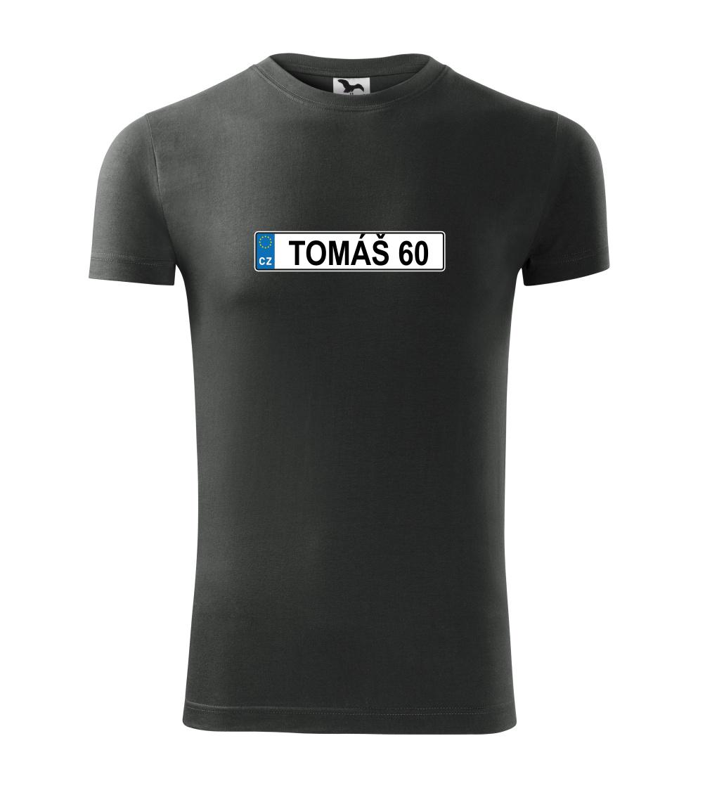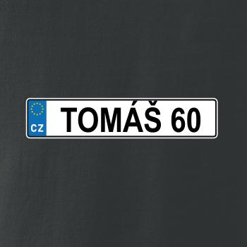 Narozeninové triko s motivem SPZ na auto. Triko pro oslavence Tomáše, který slaví jubileum 60 let. Dárek k šedesátinám. Narozeninová poznávačka s nápisem Tomáš 60. Triko s "espézetkou" k narozeninám. Oslav šedesátiny tímhle narozeninovým trikem!