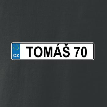 Narozeninové triko s motivem SPZ na auto. Triko pro oslavence Tomáše, který slaví jubileum 70 let. Dárek k sedmdesátinám. Narozeninová poznávačka s nápisem Tomáš 70. Triko s "espézetkou" k narozeninám. Oslav sedmdesátiny tímhle narozeninovým trikem!