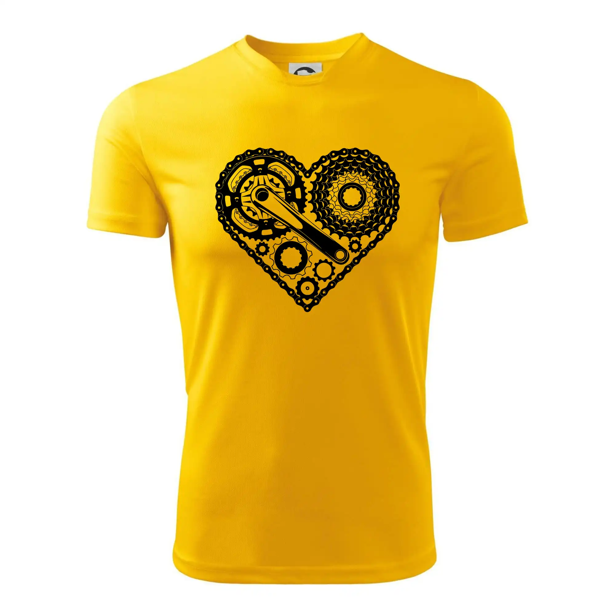 Triko pro cyklistu, na kterém je srdce plné cyklo dílů - řetěz, přehazovačka, ozubené kolo ... by měl potěšit všechny cyklisty, kteří jezdí srdcem. Cyklo triko by měl mít každý správný sportovec cyklista. Cyklistické triko ukáže, jak máte rádi sport, zejména kolo. Vhodný dárek pro cyklistu.