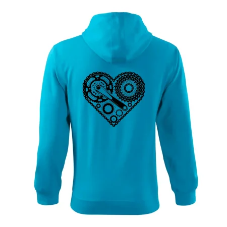 Triko pro cyklistu, na kterém je srdce plné cyklo dílů - řetěz, přehazovačka, ozubené kolo ... by měl potěšit všechny cyklisty, kteří jezdí srdcem. Cyklo triko by měl mít každý správný sportovec cyklista. Cyklistické triko ukáže, jak máte rádi sport, zejména kolo. Vhodný dárek pro cyklistu.