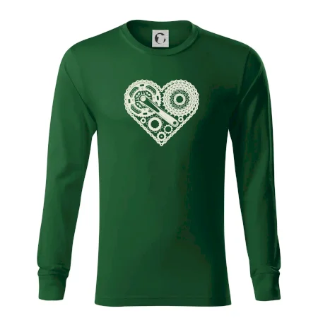 Triko pro cyklistu, na kterém je srdce plné cyklo dílů - řetěz, přehazovačka, ozubené kolo ... by měl potěšit všechny cyklisty, kteří jezdí srdcem. Cyklo triko by měl mít každý správný sportovec cyklista. Cyklistické triko ukáže, jak máte rádi sport, zejména kolo. Vhodný dárek pro cyklistu.