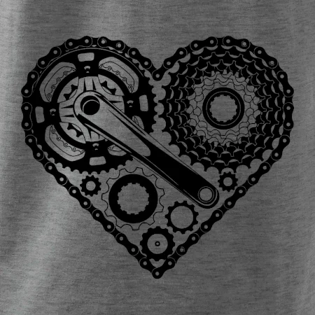 Triko pro cyklistu, na kterém je srdce plné cyklo dílů - řetěz, přehazovačka, ozubené kolo ... by měl potěšit všechny cyklisty, kteří jezdí srdcem. Cyklo triko by měl mít každý správný sportovec cyklista. Cyklistické triko ukáže, jak máte rádi sport, zejména kolo. Vhodný dárek pro cyklistu.