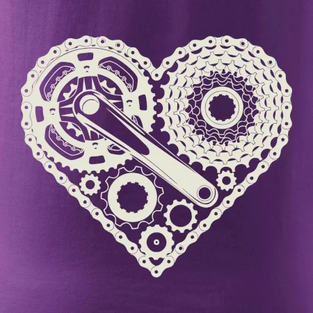 Triko pro cyklistu, na kterém je srdce plné cyklo dílů - řetěz, přehazovačka, ozubené kolo ... by měl potěšit všechny cyklisty, kteří jezdí srdcem. Cyklo triko by měl mít každý správný sportovec cyklista. Cyklistické triko ukáže, jak máte rádi sport, zejména kolo. Vhodný dárek pro cyklistu.