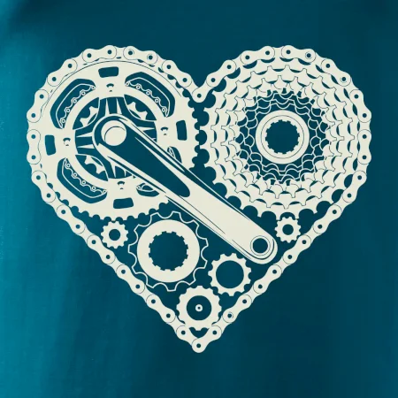 Triko pro cyklistu, na kterém je srdce plné cyklo dílů - řetěz, přehazovačka, ozubené kolo ... by měl potěšit všechny cyklisty, kteří jezdí srdcem. Cyklo triko by měl mít každý správný sportovec cyklista. Cyklistické triko ukáže, jak máte rádi sport, zejména kolo. Vhodný dárek pro cyklistu.