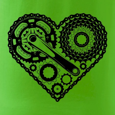 Triko pro cyklistu, na kterém je srdce plné cyklo dílů - řetěz, přehazovačka, ozubené kolo ... by měl potěšit všechny cyklisty, kteří jezdí srdcem. Cyklo triko by měl mít každý správný sportovec cyklista. Cyklistické triko ukáže, jak máte rádi sport, zejména kolo. Vhodný dárek pro cyklistu.