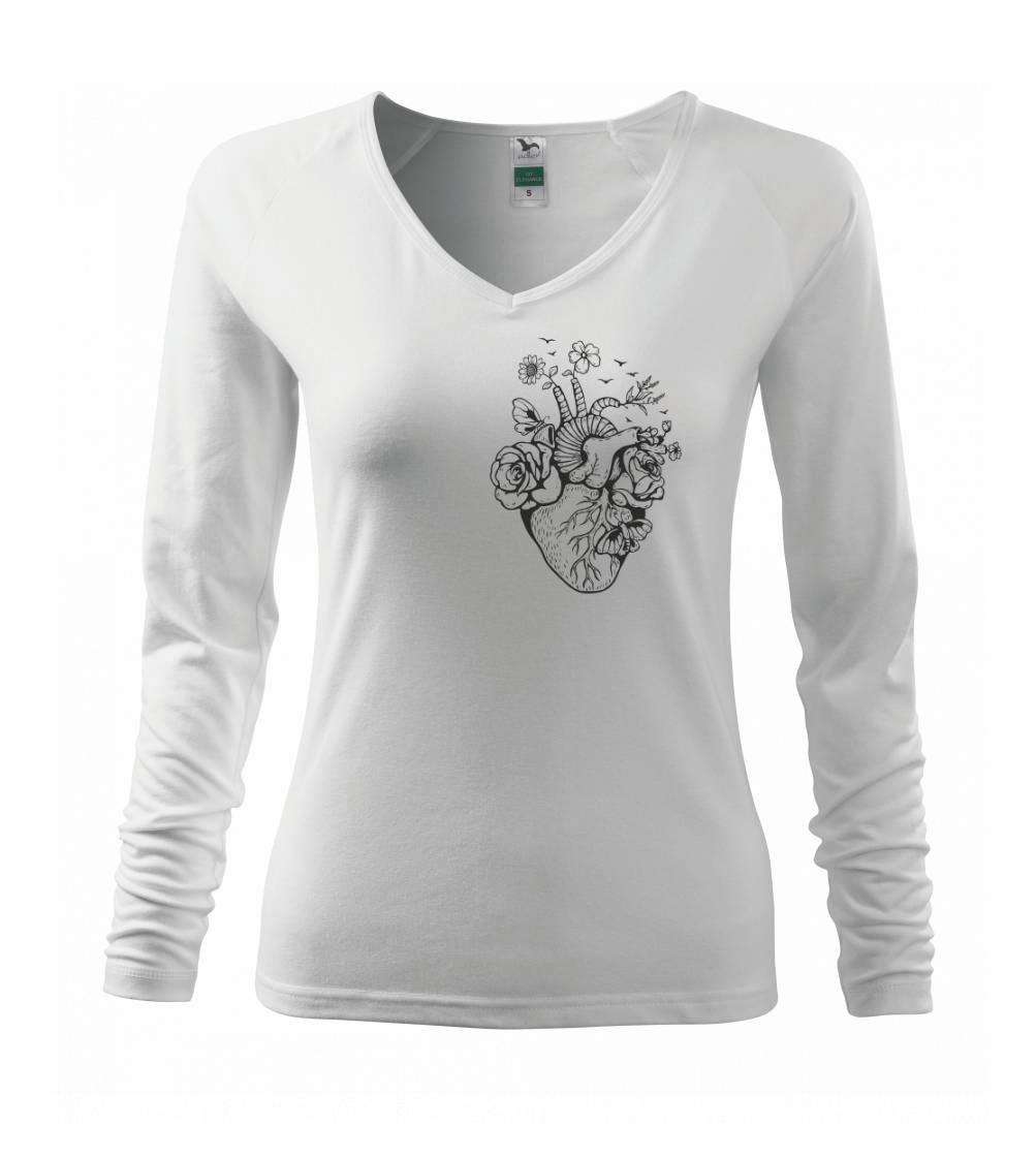 Triko pro milovníka přírody na sobě má rozkvetlé srdce, na kterém jsou květy a květiny. Je nějaká květina nebo květ i na tvém srdci?